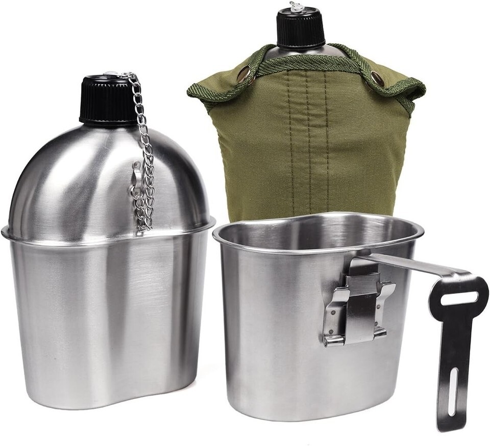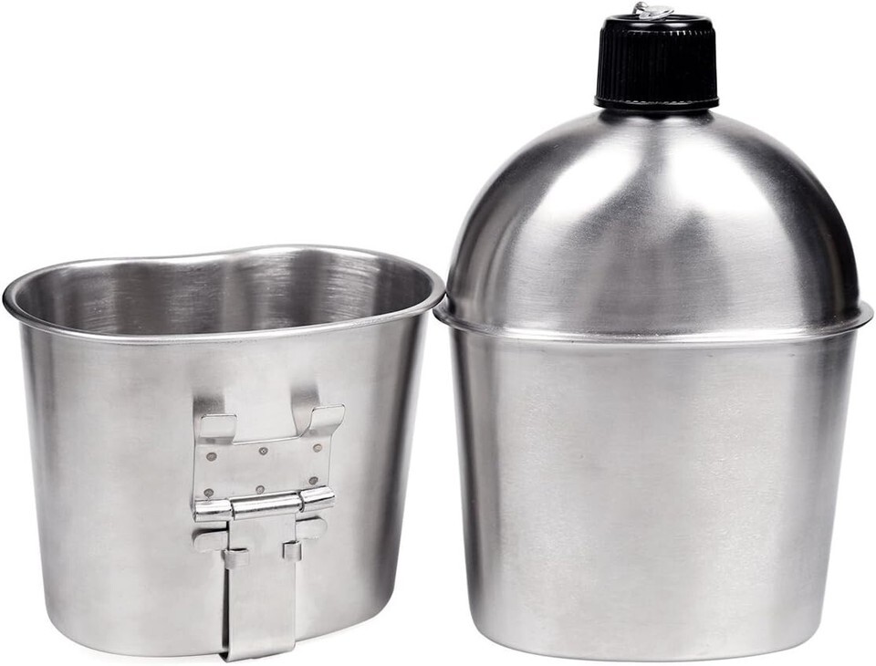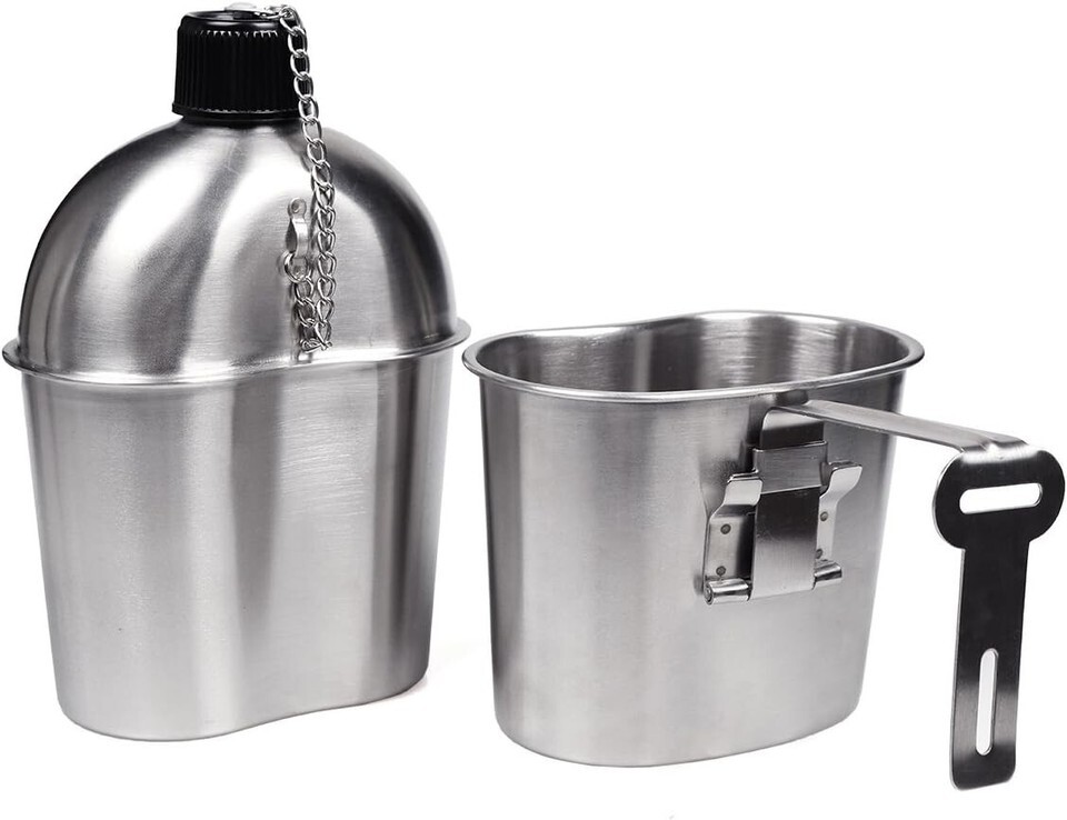 Durable 1QT Stainless Steel Canteen with 0.5QT Folding Cup - Ideal for Outdoors