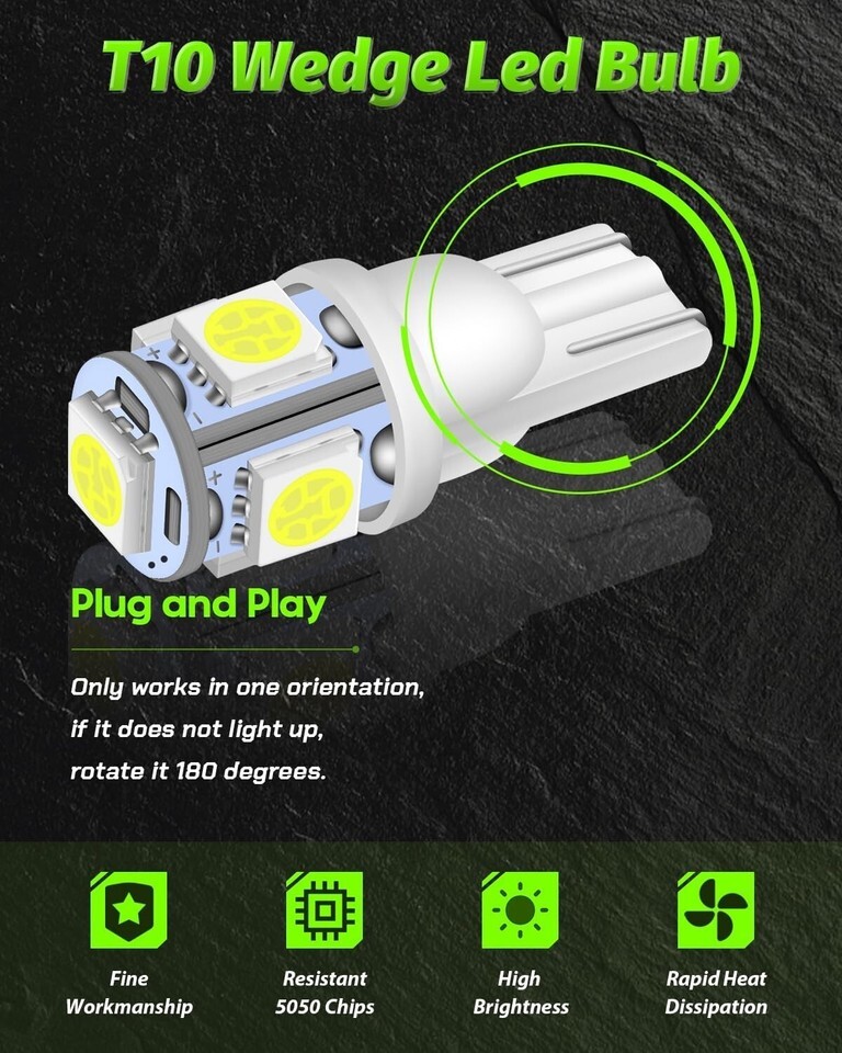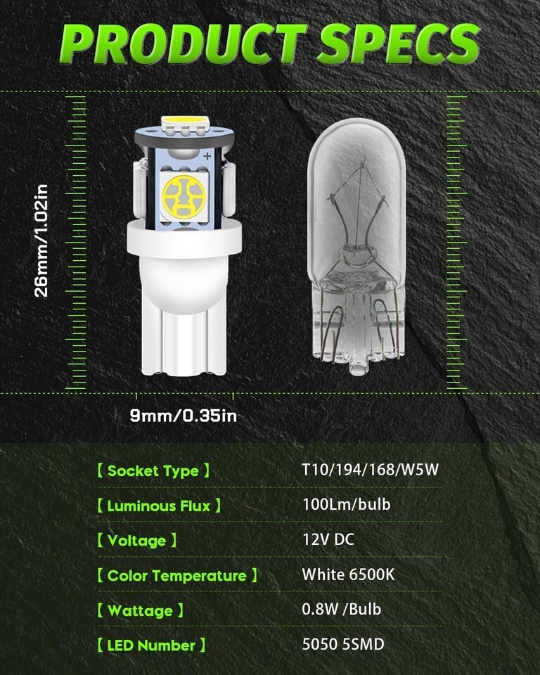 Universal Fit: Designed to replace OEM# 194, T10, 158, 168, 193, 198, 2825, W5W, 501, 147, 152, 159, 161, 175, 184, 192.
