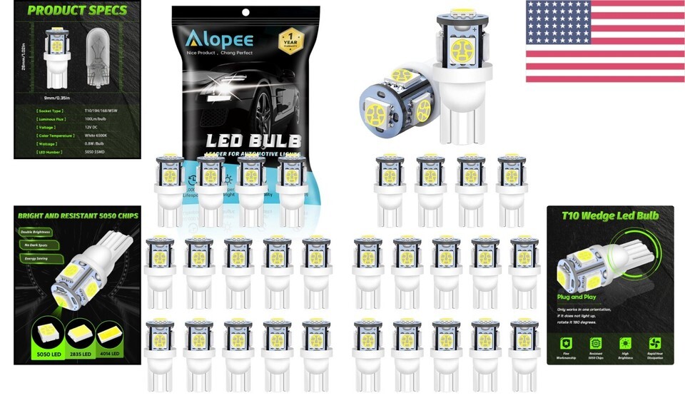 Your ultimate solution for universal automotive replacement lighting! Experience brilliance and efficiency with our 30 pack of Bright White 6500K LED bulbs.