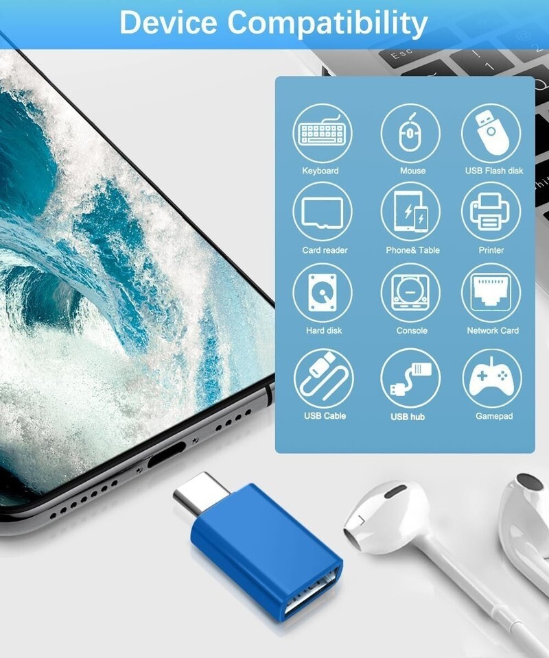 Includes two types of adapters: USB-A and USB-C, offering versatile compatibility.