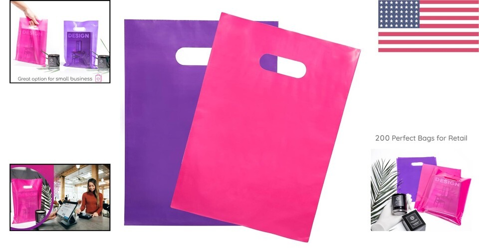 Elevate your gifting and retail experience with our exquisite pack of 200 glossy merchandise bags, beautifully presented in two captivating colors?100 pink and 100 purple. Each bag measures 9" x 12", crafted with die-cut handles for effortless convenience.