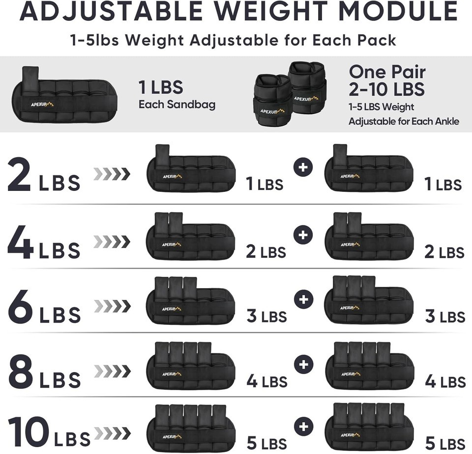 Modularized Weights: Each ankle weight features 5 removable weight modules, allowing you to adjust the weight from 1 to 5 lbs to match your fitness level.