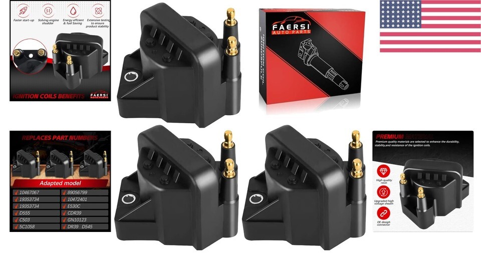 Set of 3 Ignition Coil Packs for Buick, Chevy, GMC - High Efficiency Quality