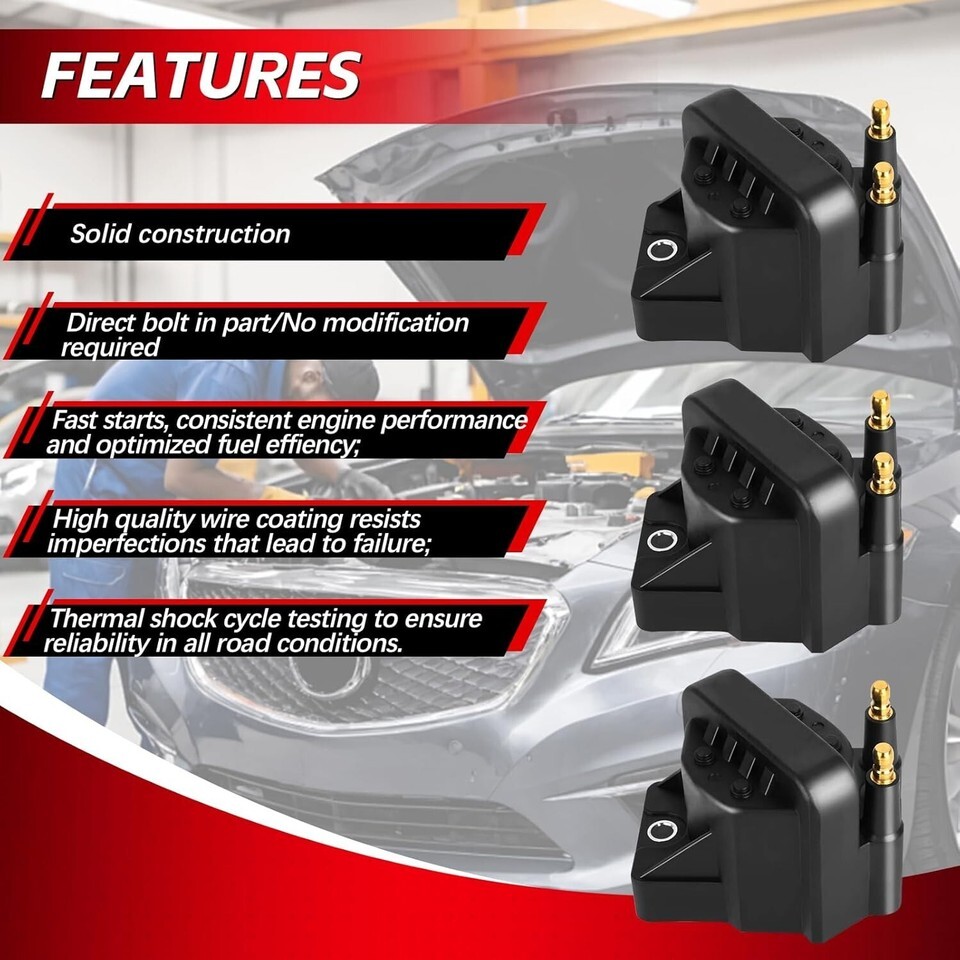 Invest in durability and quality with our ignition coil packs set; meticulously crafted to enhance your vehicle's performance while adhering to strict OEM standards. With a one-year unlimited-mileage guarantee, you can buy with confidence knowing that you are choosing a reliable automotive partner that protects your investment.