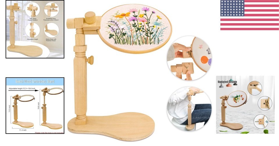 Features: Adjustable,360 Degree Rotation,Suitable for Round Hoops,Suitable for Square Hoops,Table-Top Use,Lap Stand Use,Portable,Easy Assembly,Polished Surface,Sturdy Build