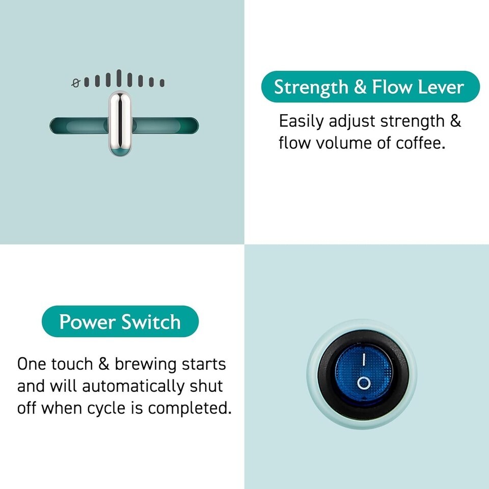 Customizable Strength: Easily adjust the flow strength lever to brew coffee or tea that perfectly suits your preferred taste.