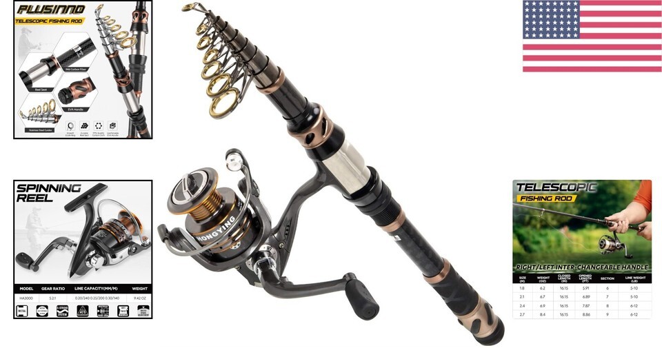 Carbon Fiber Telescopic Fishing Rod & Reel and similar items