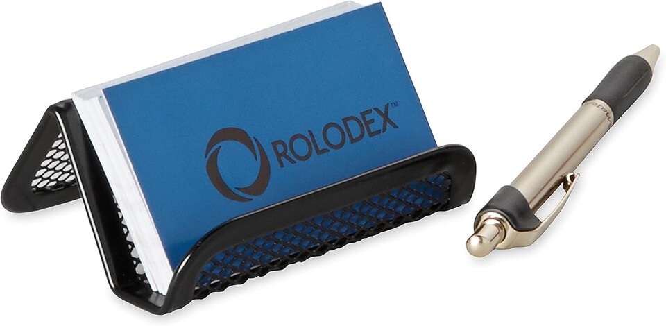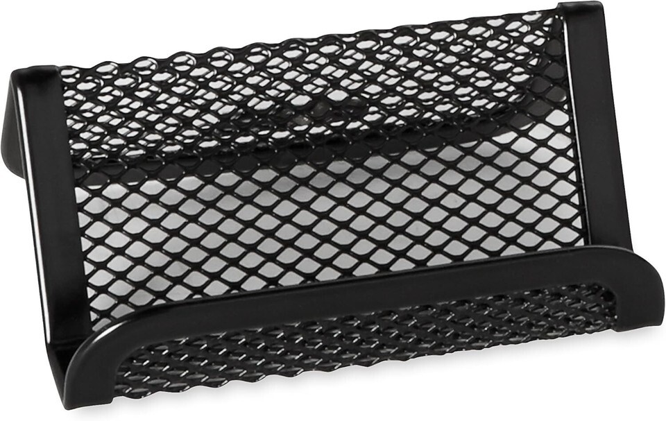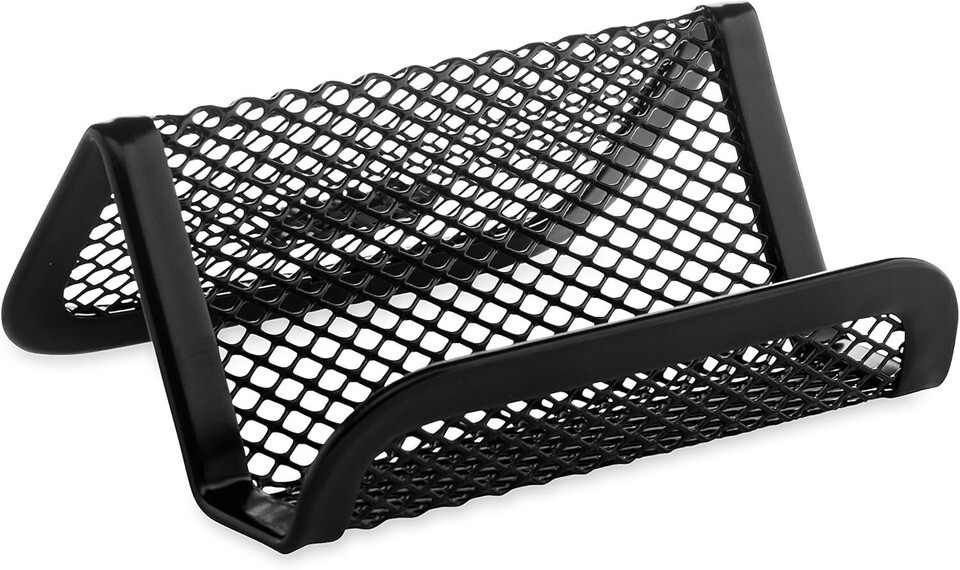 Transform your desktop into a sophisticated showcase for your business cards with this Elegant Black Mesh Business Card Holder. Crafted from durable rolled mesh steel, its unique crisscross design brings an element of industrial elegance to your workspace. Not only does it keep your business cards organized and accessible, but it also adds a touch of style that reflects your professional image. The open design allows for nearly any card size, making it a truly versatile addition to your office essentials.