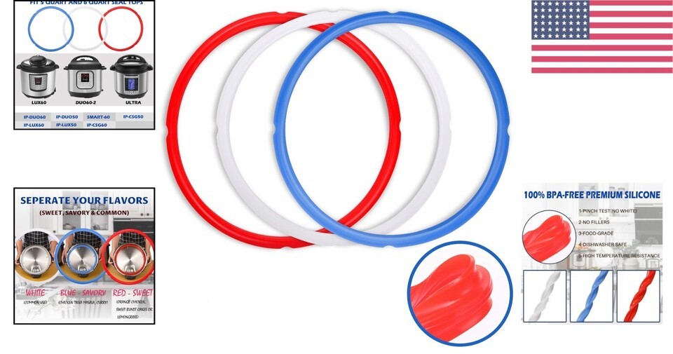 Food-Grade Silicone Sealing Rings for 6 Qt Instant Pot - Sweet Savory 3 Colors
