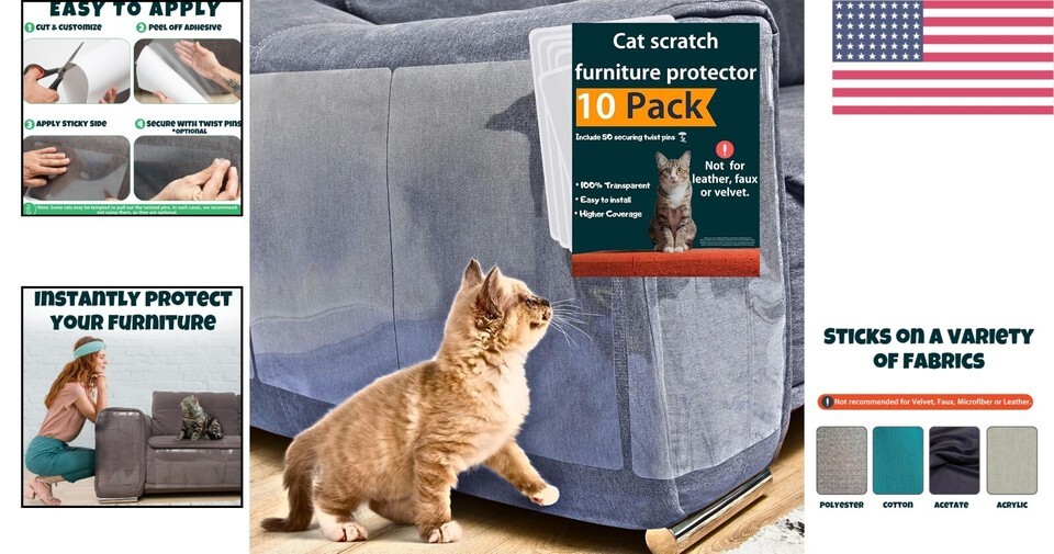 Cat Scratch Furniture Protectors 10-Pack + 50 Pins - Stylish Discreet Solution