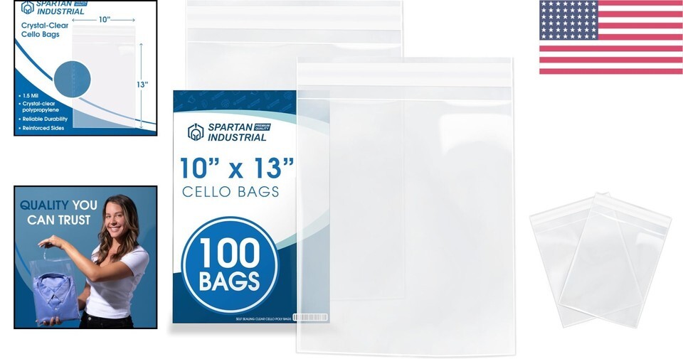Durable 100 Count Resealable Cello Bags 10"x13" - Self-Seal Tear-Resistant
