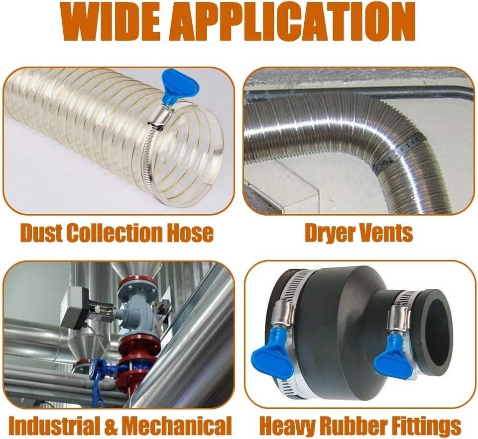 Wide Application: Perfectly suited for securing duct work, dryer vents, dust collection hoses, piping, large cables, PVC tubing, and more. Ideal for automotive, industrial, mechanical, agricultural, marine, RVs, and household use, these clamps are suitable for both indoor and outdoor use.