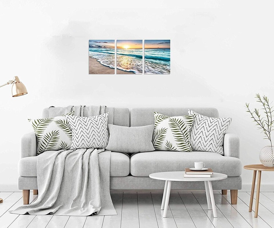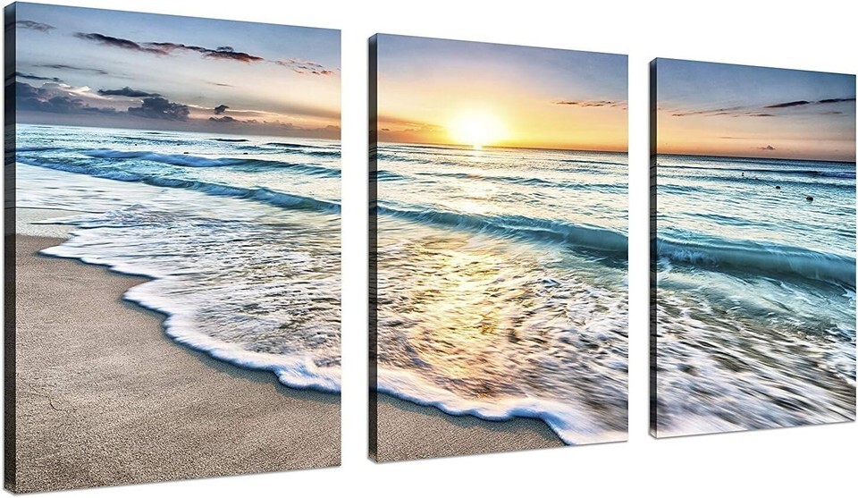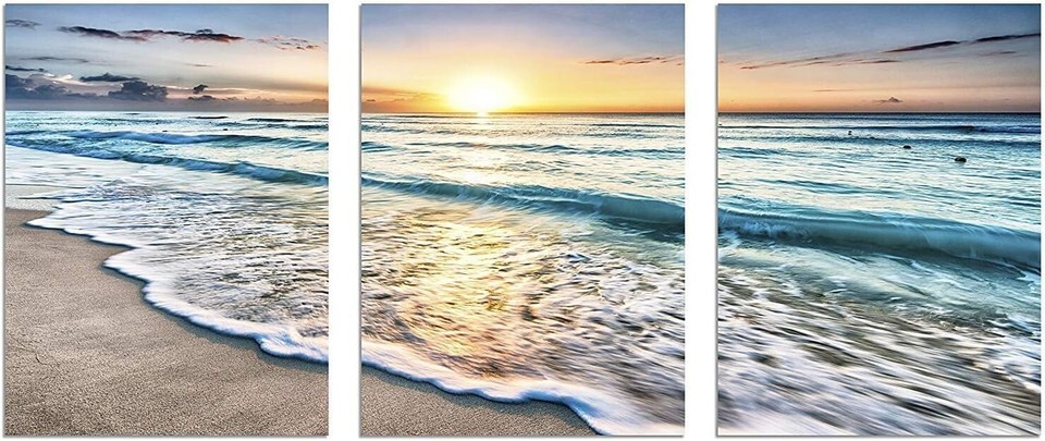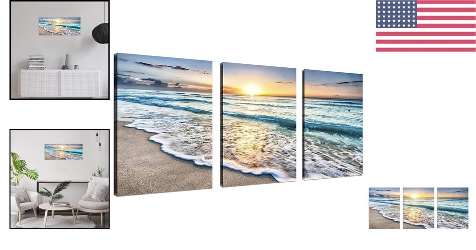 Your walls deserve a touch of elegance. Elevate your home?s ambiance or surprise your loved ones with a gift that speaks volumes about your taste. Order your Ready to Hang 3-Panel Blue Sea Sunset Canvas Art today and redefine your space with luxury and sophistication!