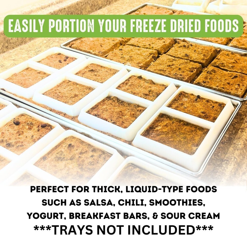 Perfect Portions Made Easy: Achieve consistent size portions with every use, ideal for packaging meals. Simply fill the dividers and either freeze-dry directly or press them into the food like a cookie cutter.