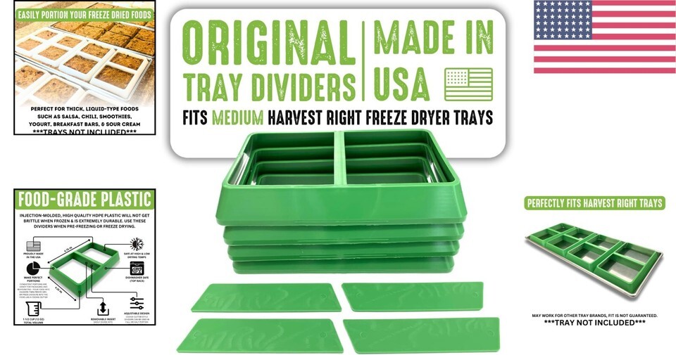 Dishwasher Safe Green Tray Dividers for Freeze Dryer - Fits Harvest Right Trays