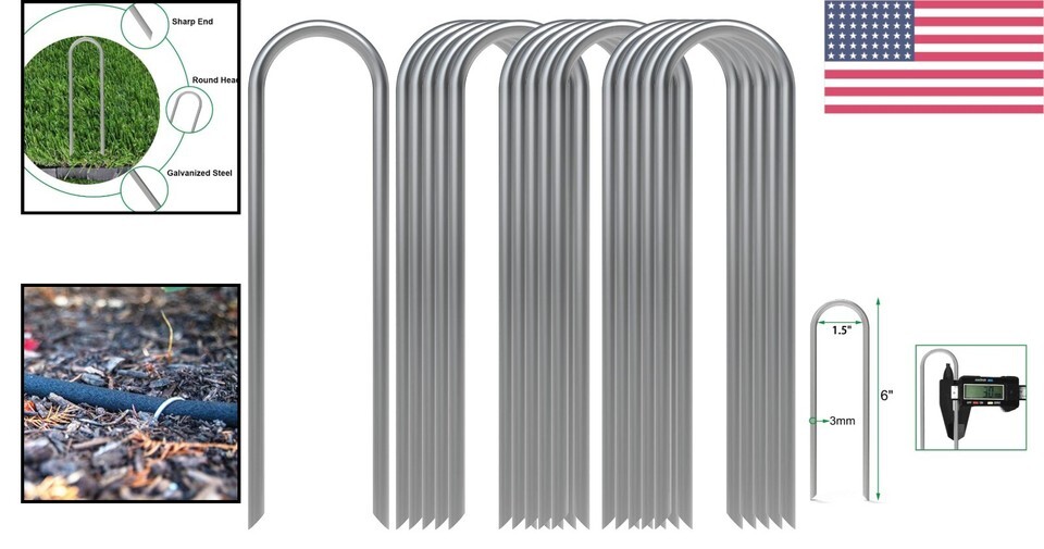 Transform your outdoor spaces with these 6-inch heavy-duty galvanized lawn U pins, designed for durability and efficiency in every garden, yard, or landscape project.