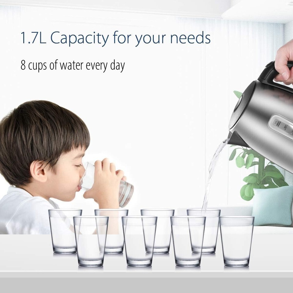 With a generous capacity of 1.7 liters, enjoy multiple cups of your favorite drinks without the wait. Make every morning a ritual and indulge in exquisite flavors with the elegance this kettle brings to your countertop. Don?t settle for anything less than perfection.