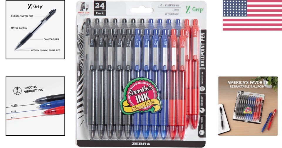In a world where practicality meets elegance, the Z-Grip Ballpoint Retractable Pen stands out as a versatile everyday tool that offers not just functionality but also style. Perfect for home, school, workspace, small business, or traditional office, these pens will elevate your writing experience. You deserve pens that perform beautifully while looking chic?this set delivers value, performance, comfort, and style all in one.