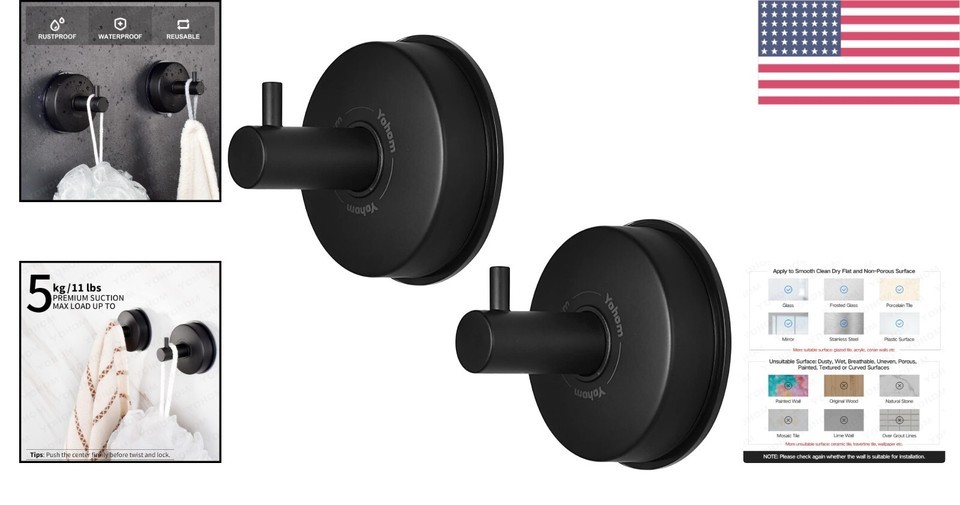 Transform your space with our Rustproof Matte Black Suction Hooks ? a perfect blend of style, convenience, and strength! Craft a seamless organization system in your bathroom or kitchen with these easy-to-install, removable hooks. Ideal for those who cherish elegance and efficiency, elevate your indoor experience by ordering your suction hooks today!