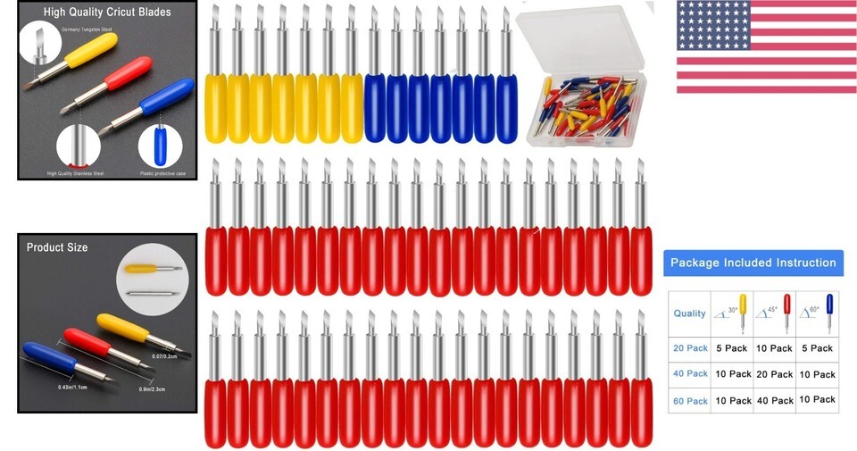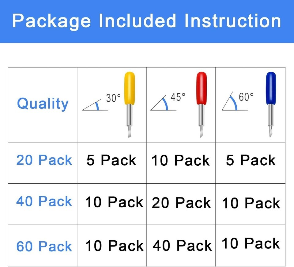 60 PCS Cricut Replacement Blades Set - 45°, 30°, 60° for All Cricut Machines