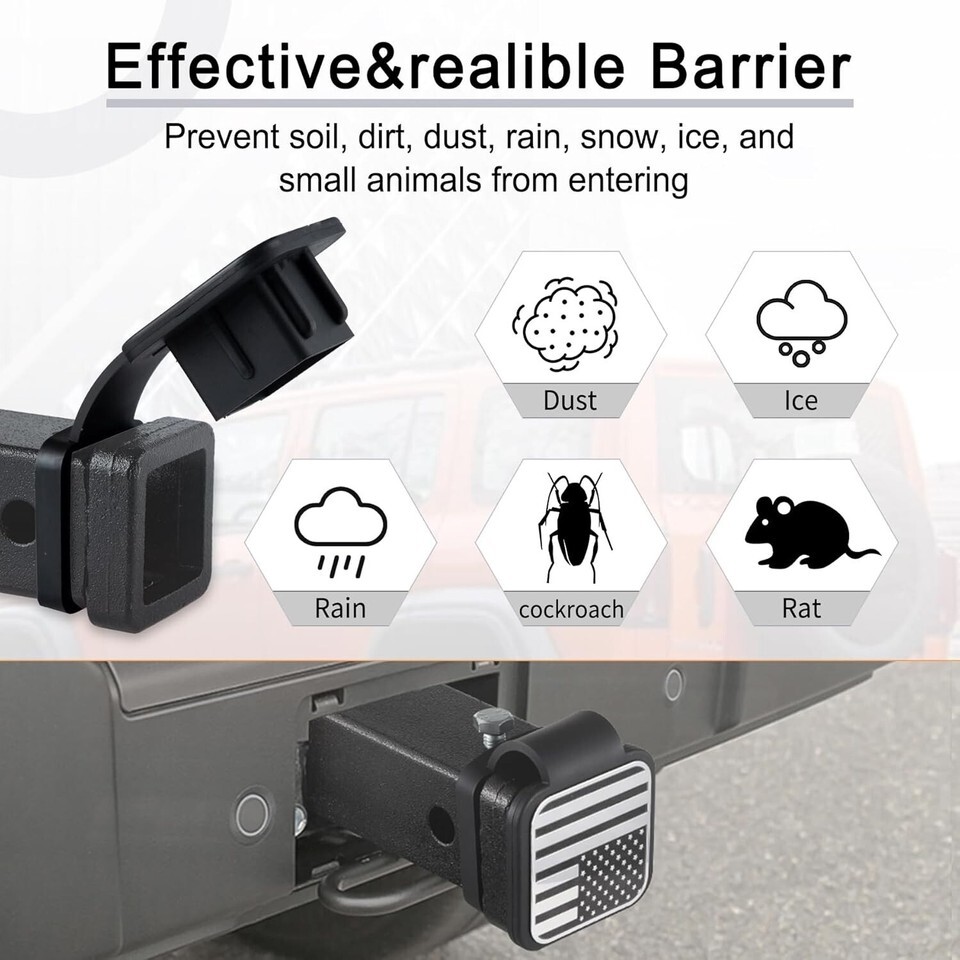 Effectively keeps mud, dirt, dust, rain, snow, ice, and small animals from entering the receiver tube.
