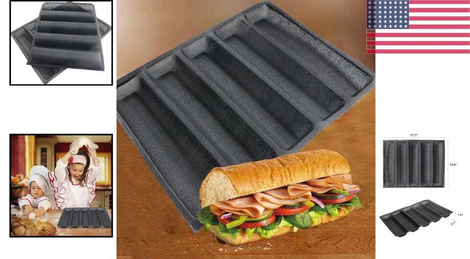 Durable Perforated Silicone Baking Mold for Perfect French Baguettes - 5 Loaf