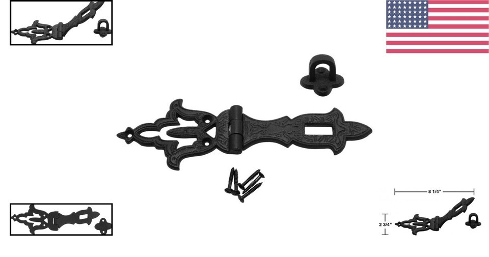 Elegant Black Wrought Iron Hasp Latch - 8.25 in Antique Door Lock with Hardware