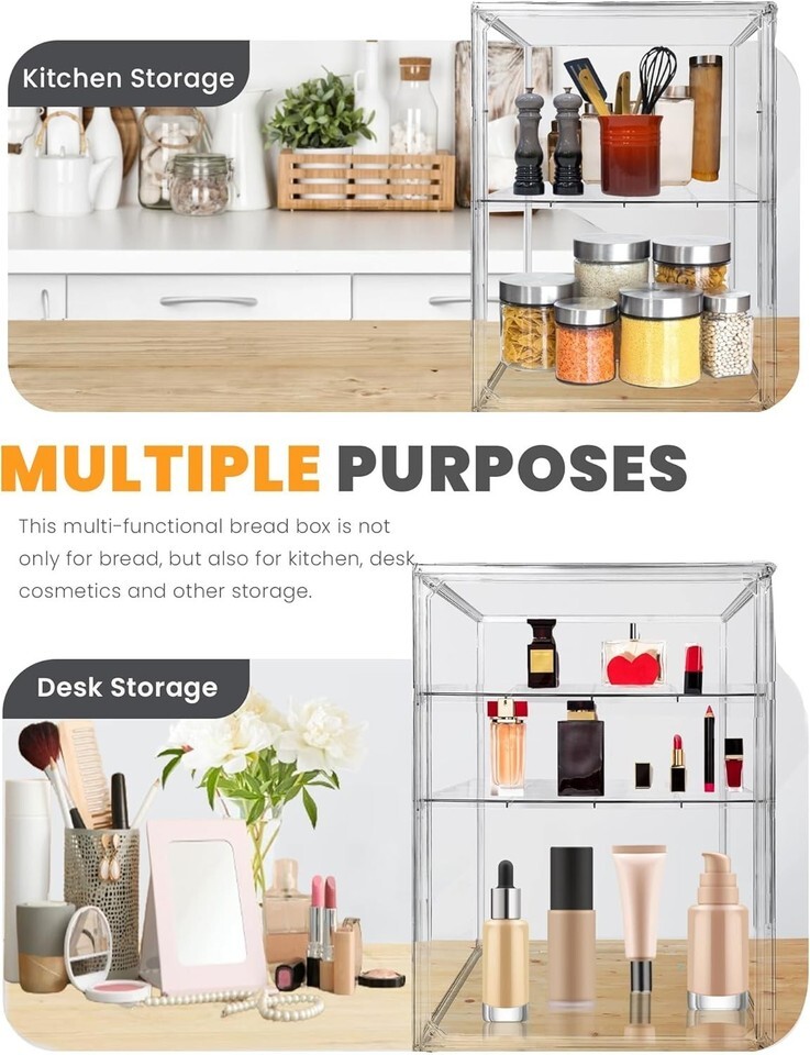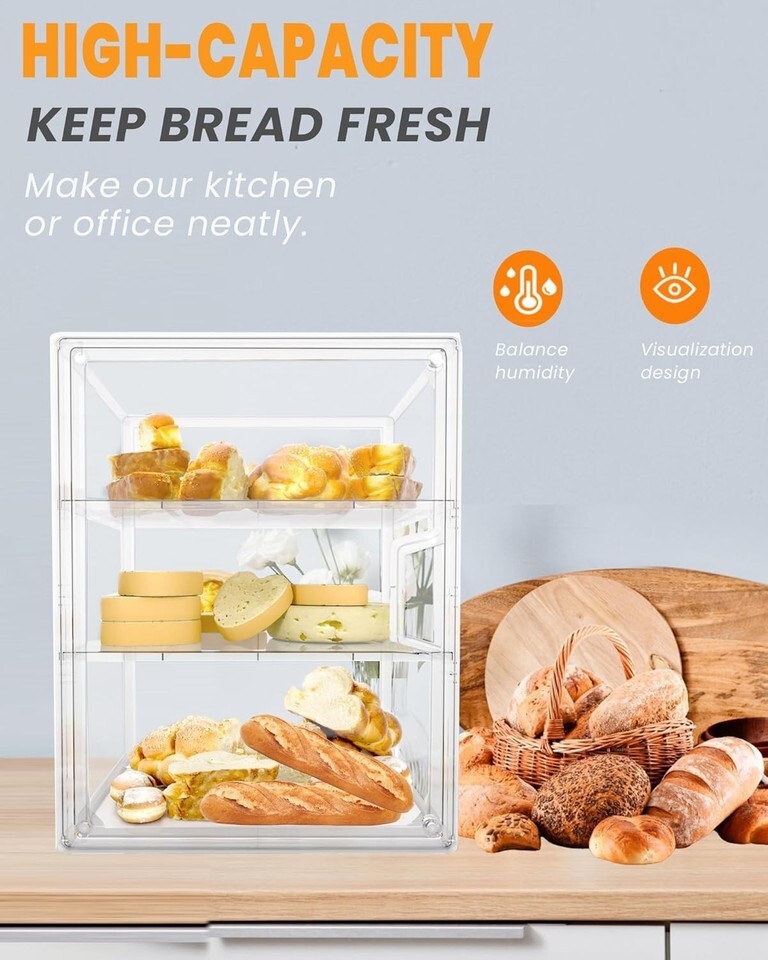 This bread saver is not just for bread; it?s a multifunctional storage solution that is perfect for all types of baked goods you wish to keep fresh. Whether it?s kitchenware, office supplies, cosmetics, or other items, this box provides an organized and aesthetically pleasing solution for your countertop.