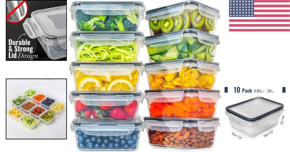 Clear Plastic Food Storage Set: 20 Leakproof Containers for Kitchen Organization