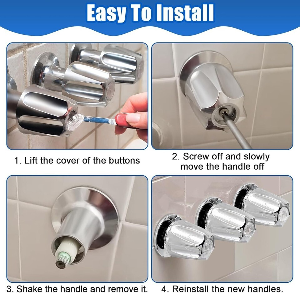 3-Piece Chrome Faucet Handle Kit – Stylish & Easy to Install Upgrade for Baths