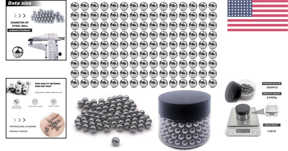 Upgrade your performance with our 2000 pieces of 1/4" Solid Steel Bearing Balls, designed for professionals and enthusiasts alike. Made from high-quality bearing steel, our precision balls are not only resistant to wear and corrosion but also elegantly crafted to ensure maximum functionality. Whether you're involved in engineering, mechanics, or any intricate project requiring precision, our bearing balls are the set you need.