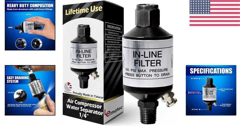 1/4 NPT Air Compressor Water Separator & Inline Filter for Optimal Performance