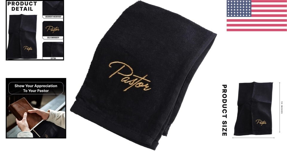 Sophisticated Black Cotton Towel with Gold Lettering for Pastors
