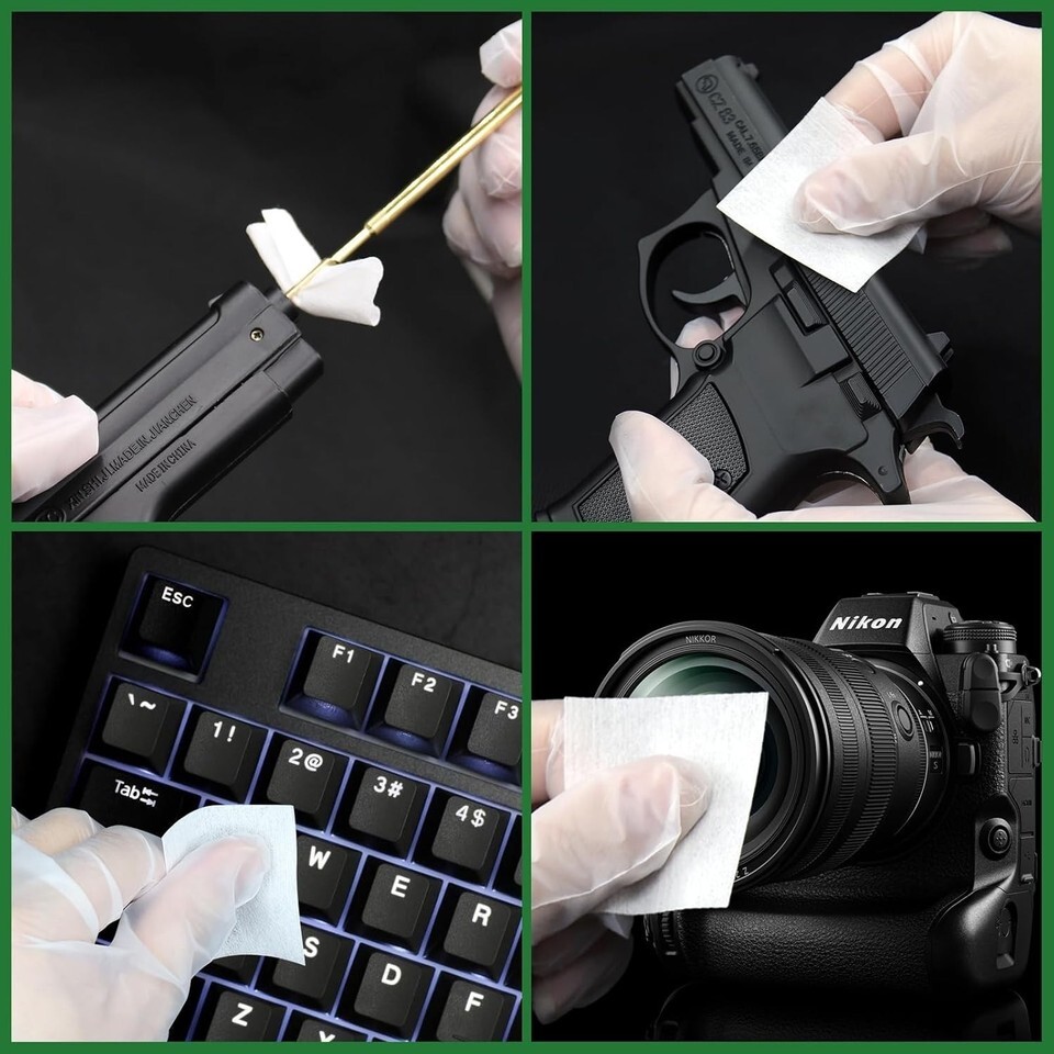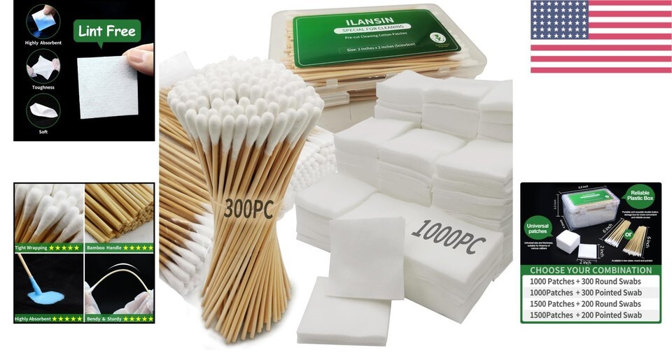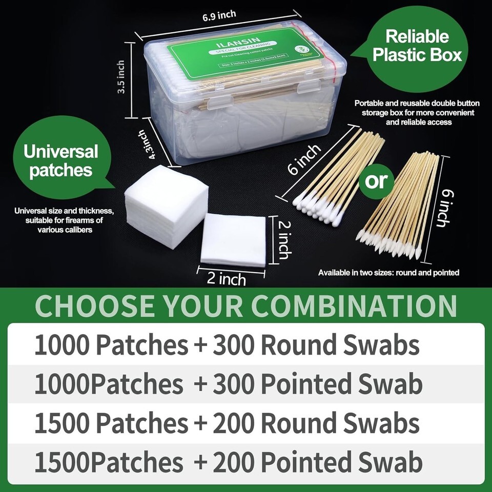1700 PCS Total: Upgrade your cleaning routine with 1000PCS of 2"x2" lint-free gun cleaning cloths and 300PCS of 6" cotton cleaning swabs.