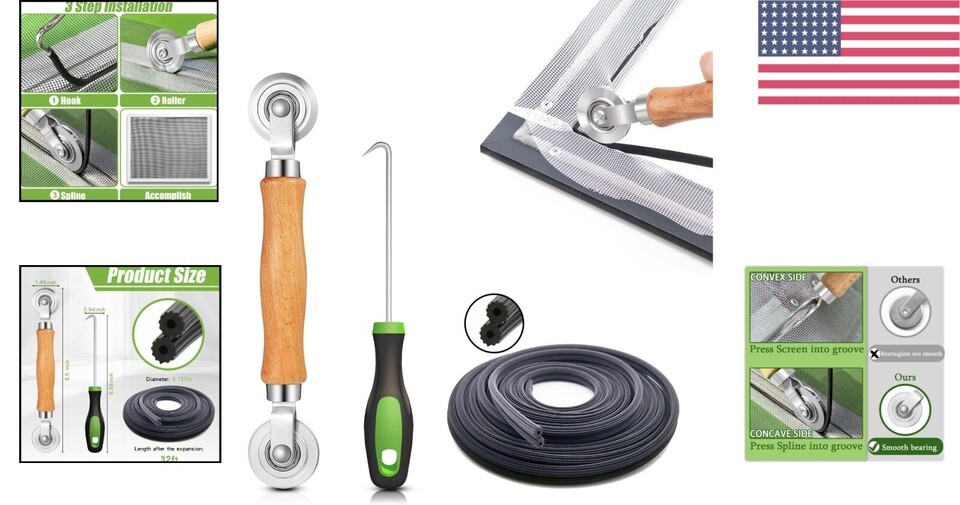 Perfect Screen Repair Tool: This upgraded kit includes a Steel Roller, Hook, and 32ft Screen Spline for all your screen replacement needs.
