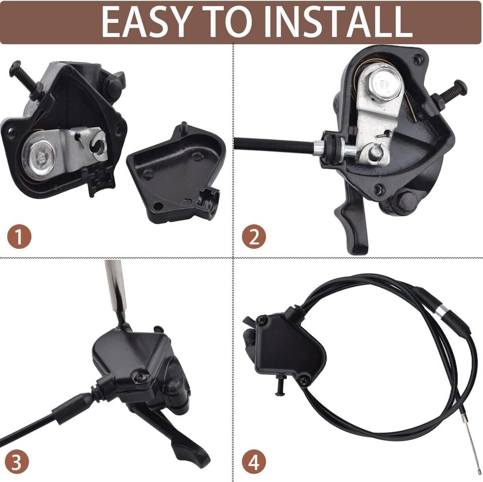 Upgrade your vehicle's control with our Thumb Throttle Cable Accelerator Handle Assembly, designed specifically for 50cc to 250cc mini bikes, ATVs, and go-karts. Make your rides more enjoyable with a touch of effortless elegance!
