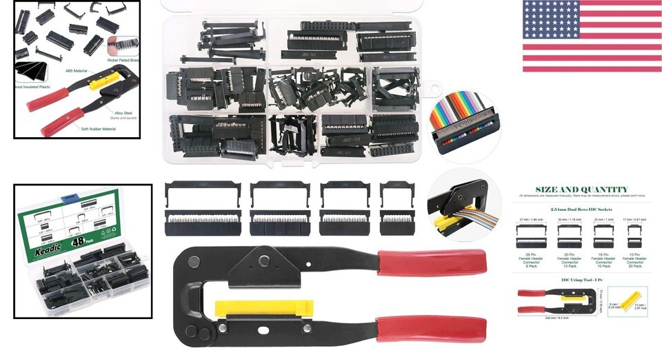 Comprehensive 49-Piece IDC Connector Set with Alloy Crimping Tool & Instructions
