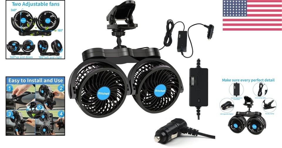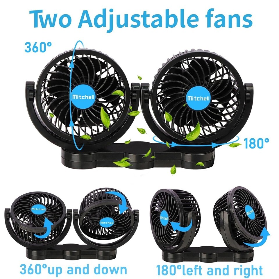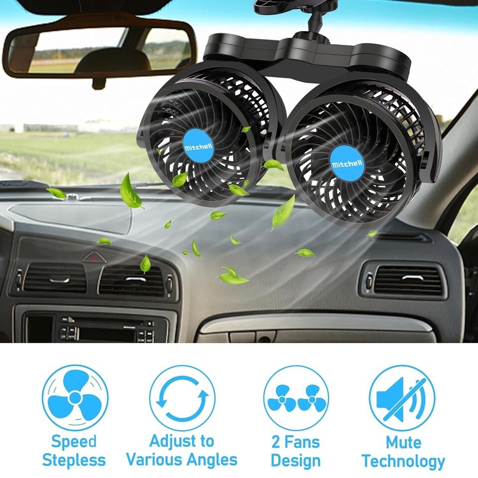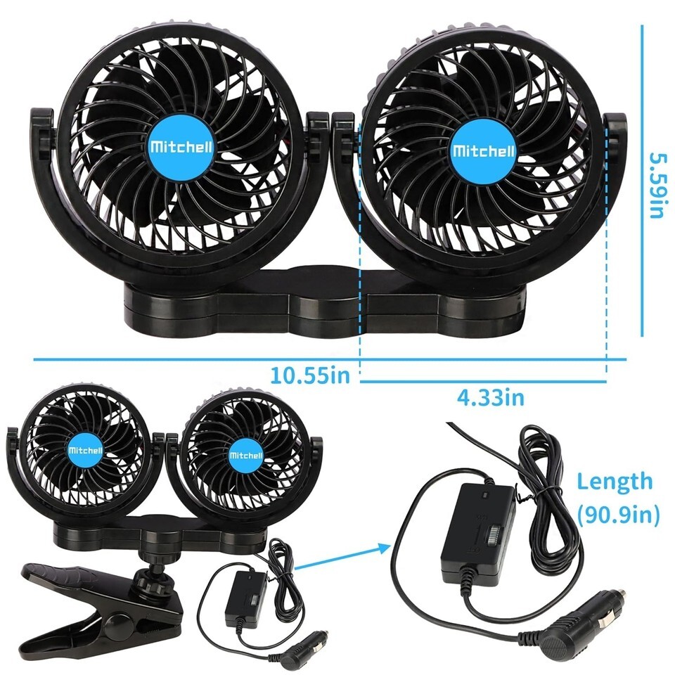 1 x Dual Head 12V Vehicle Fan with Power Cord (8.2ft)