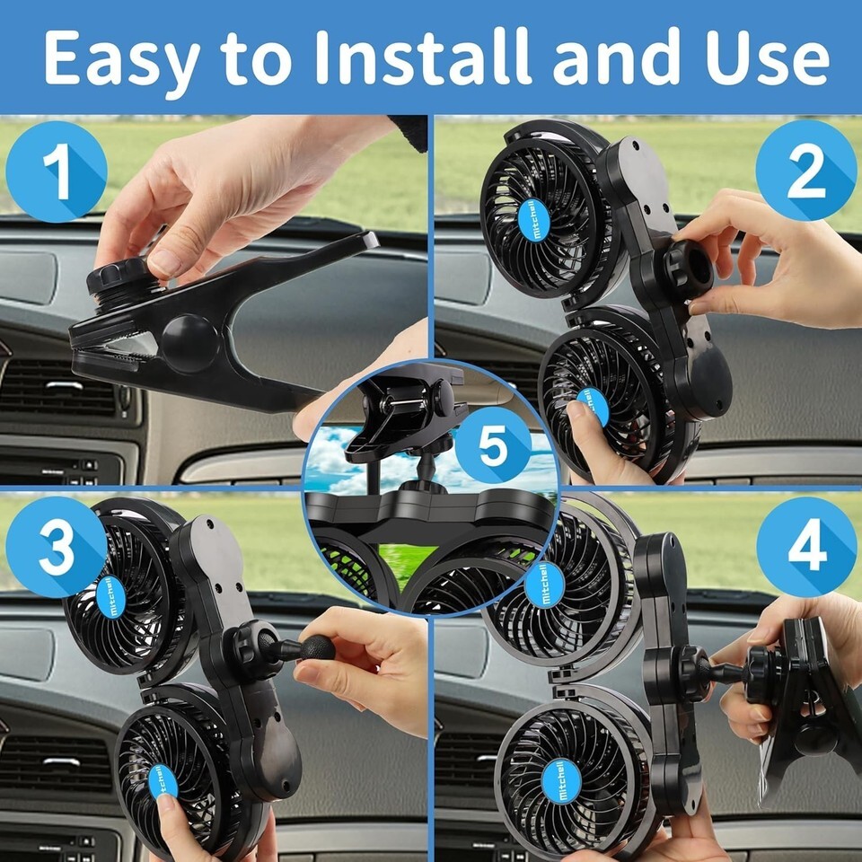 Stepless Speed Regulation: Effortlessly adjust the wind speed to your liking, ensuring maximum comfort whether parked or on the road.