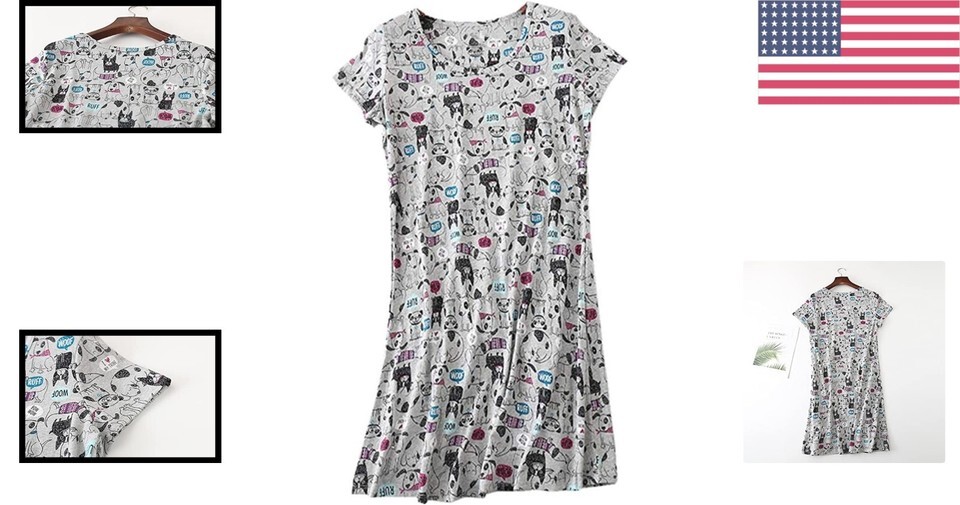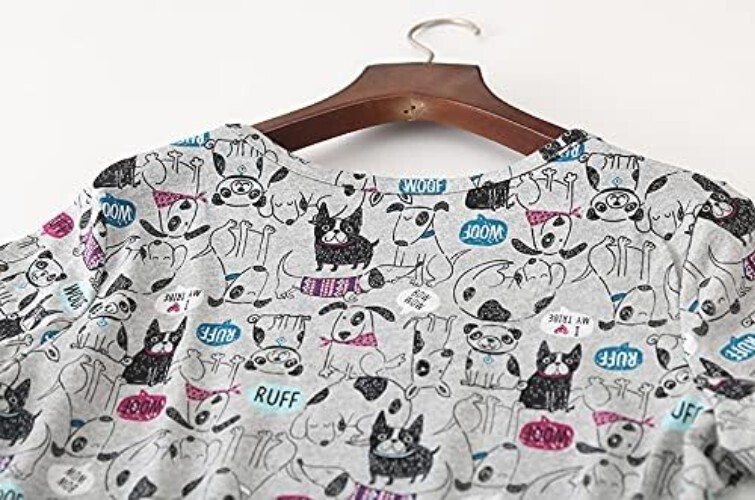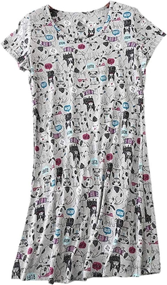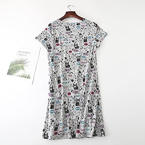 Charming Gray Dogs Print Women's Cotton Nightgown - Perfect for Cozy Nights