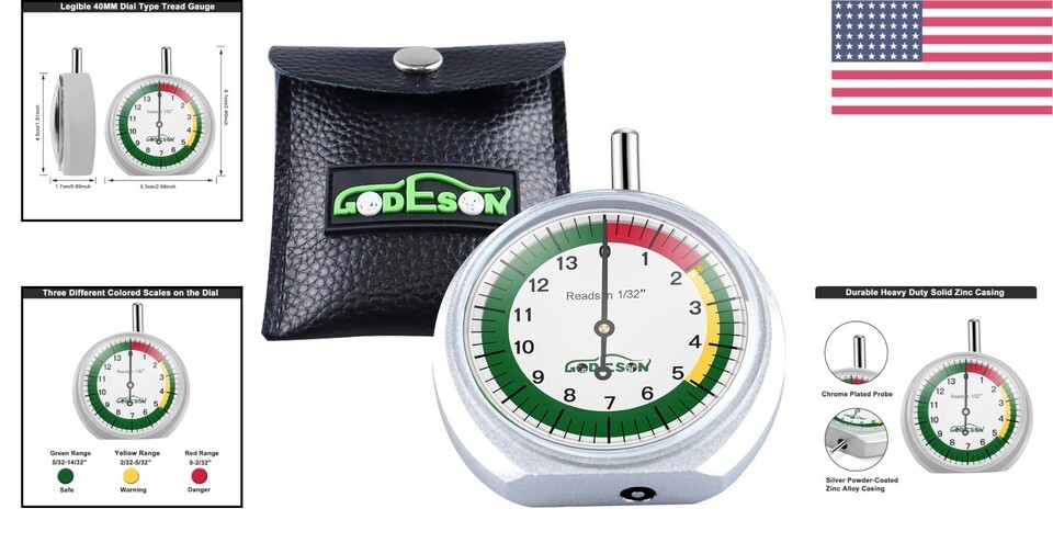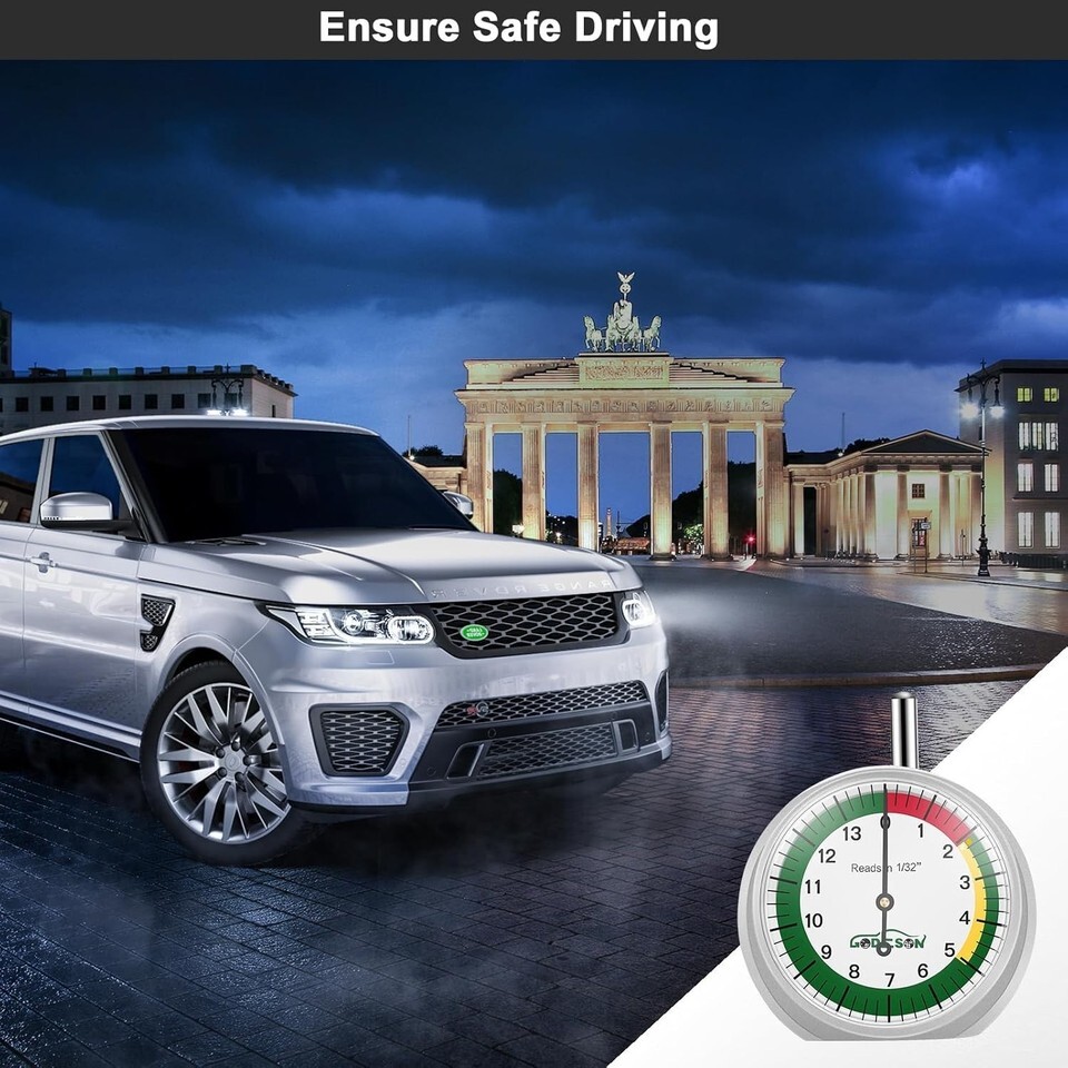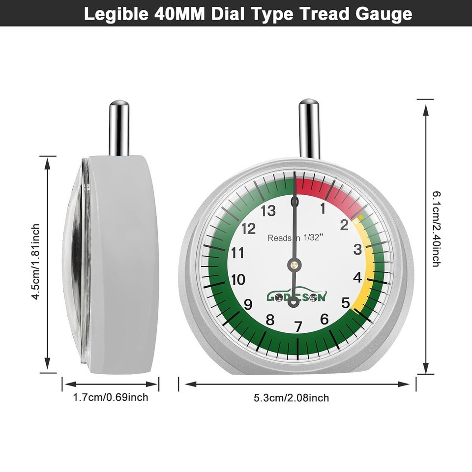 Accurate Measurement: Features a dial design that measures in 1/32-inch increments, providing precise data to assess tire wear and enhance driving safety.