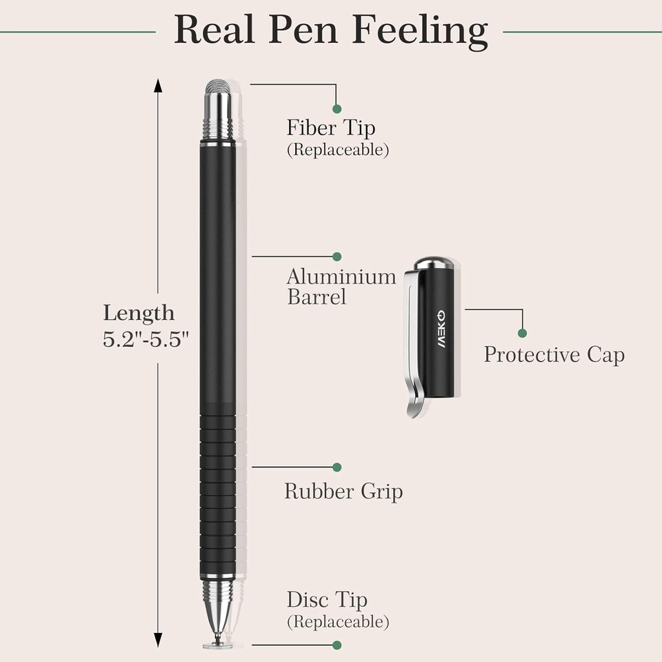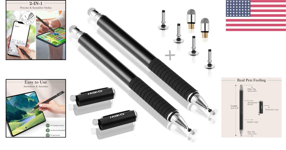 Convenient Package: Includes 2 stylus pens, 4 replacement disc tips, and 2 replacement fiber tips. Extra replacements available for purchase on Amazon.