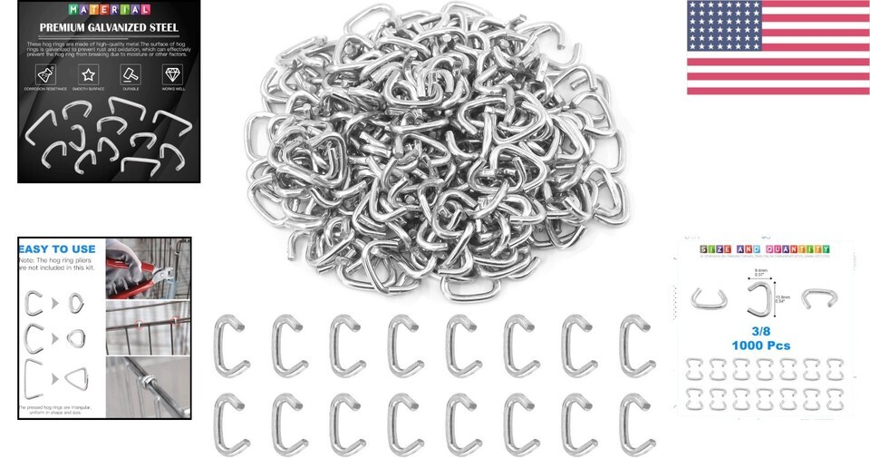 Make a wise investment with our 1000Pcs 3/8'' Zinc Plated Steel Hog Rings today, and ensure your projects are held together with strength and style!