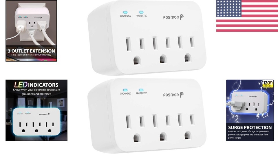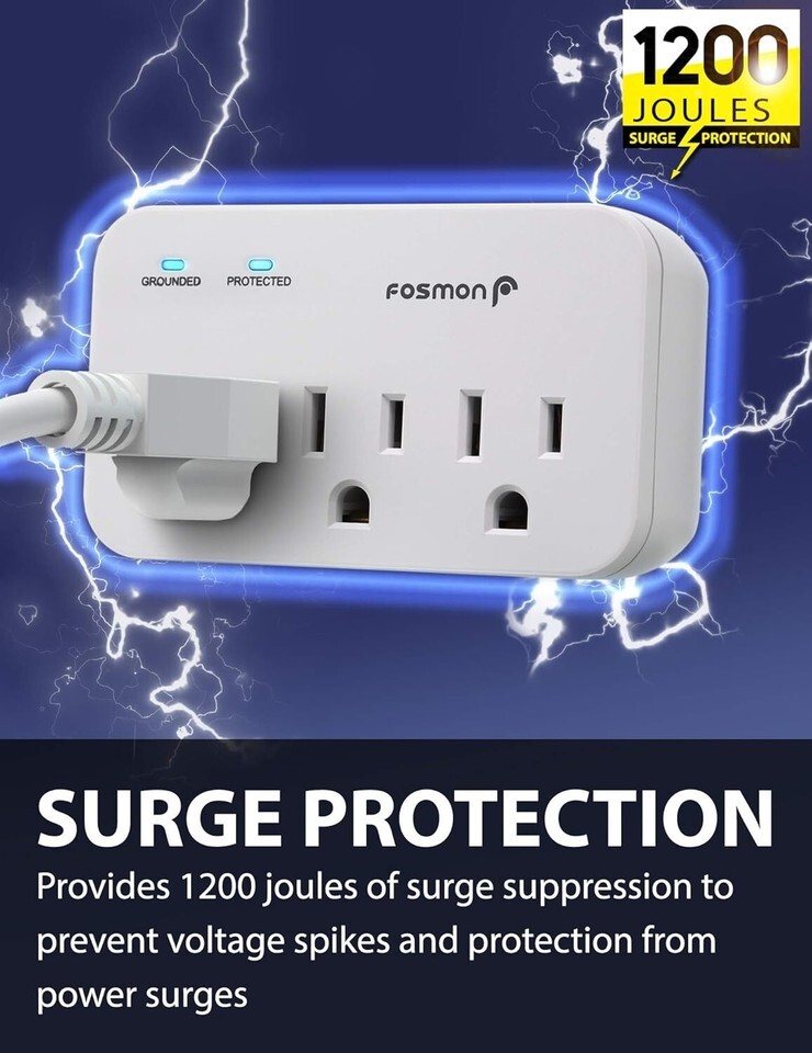 Compact 3-Prong Surge Protector with 1200 Joules - Essential for Home Appliances