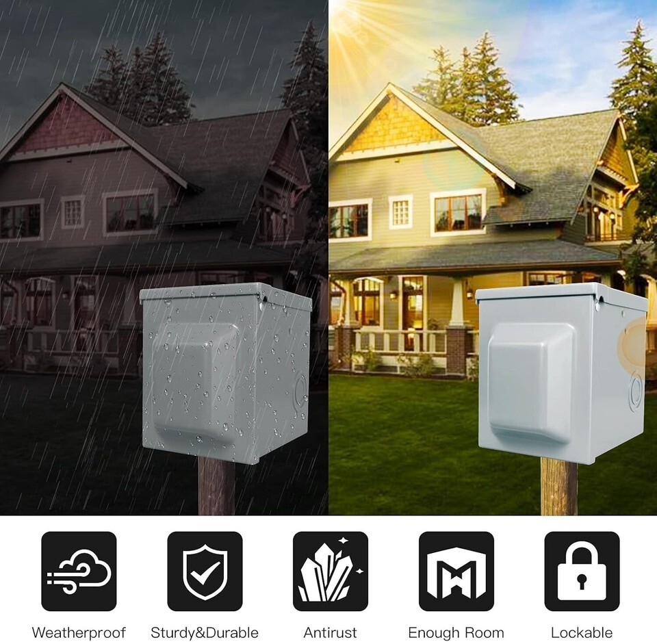 Weatherproof Anti-Theft: Crafted from heavy gauge iron for superior durability, this outlet effectively shields against environmental elements. Lockable doors ensure security against power theft and unauthorized disconnection.