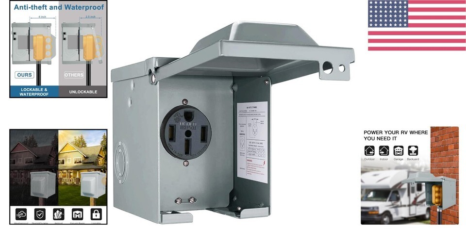 ETL Listed 50A RV Electrical Outlet - NEMA 14-50R Lockable Weatherproof Design
