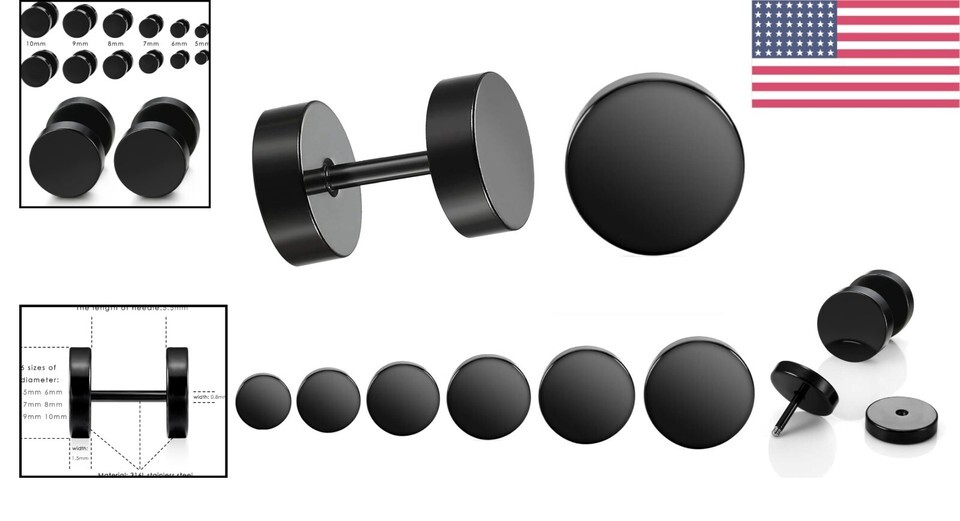 6 Pairs Black Stainless Steel Stud Earrings and similar items