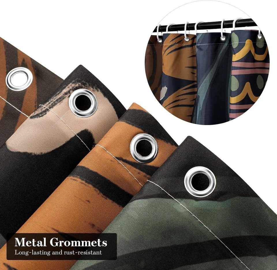 Metal grommets facilitate quick hanging on any shower pole with the included shower rings.