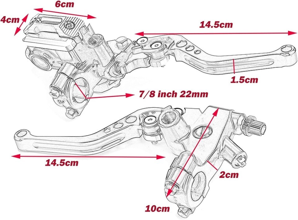 Universal fit: Compatible with most 125cc to 400cc sport bikes, street bikes, scooters, and dirt bikes, featuring a 7/8" (22mm) standard handlebar (piston bore size smaller than 12.7mm).