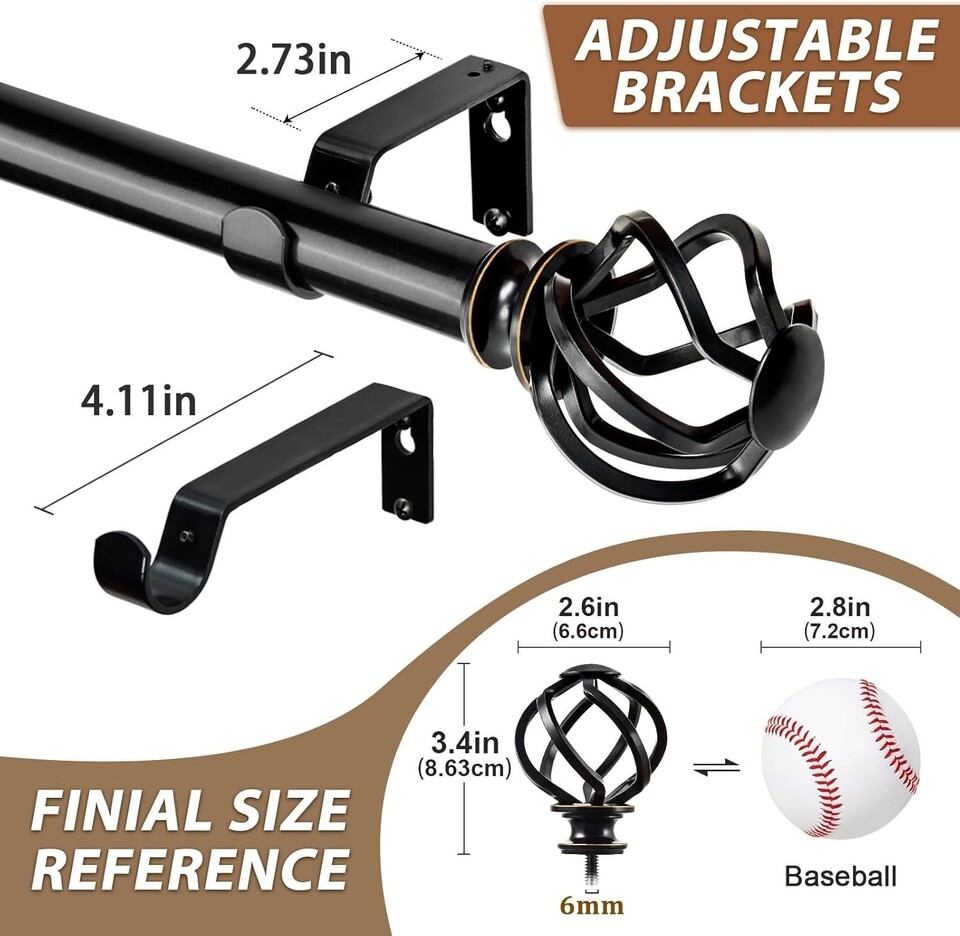 Perfect Window Treatment: Distinctive twisting cage finials on both ends provide a balanced and elegant appearance, complementing a variety of home styles.